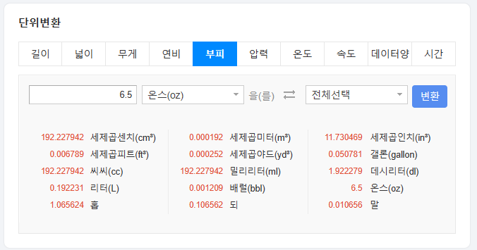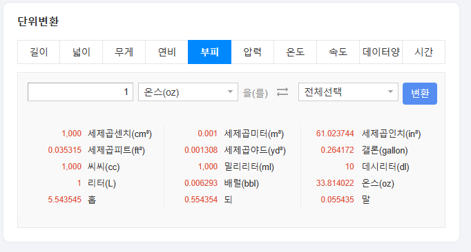 6. 대표적으로 위와 같은 설명이 있습니다. 여기서 우리는 oz라고 적혀있는 단위에 주목하면 됩니다. 1온스(oz)는 1000ml라고 되어 있네요.