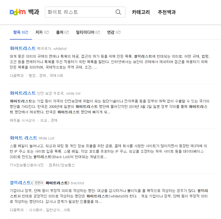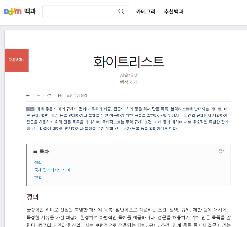 2. 다음백과에서 화이트리스트를 검색합니다.