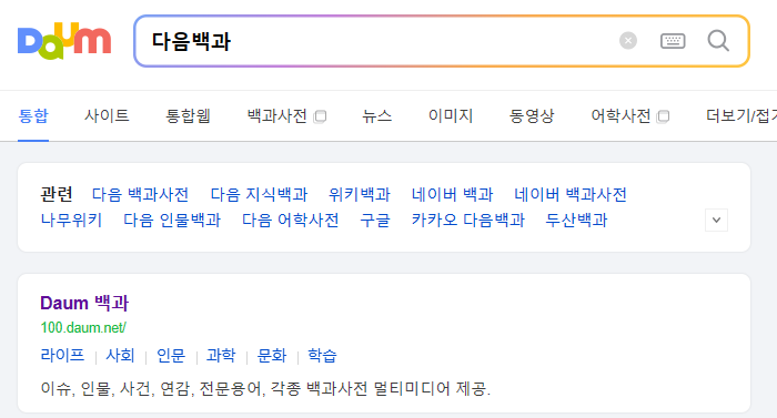 1. 다음백과 페이지를 검색합니다.
