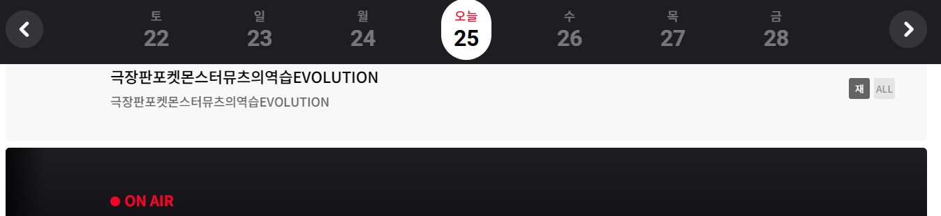 3. 투니버스 편성 프로그램을 확인합니다. 날짜를 선택할 수 있으며, 프로그램을 선택하면 상세 정보를 확인할 수 있습니다.