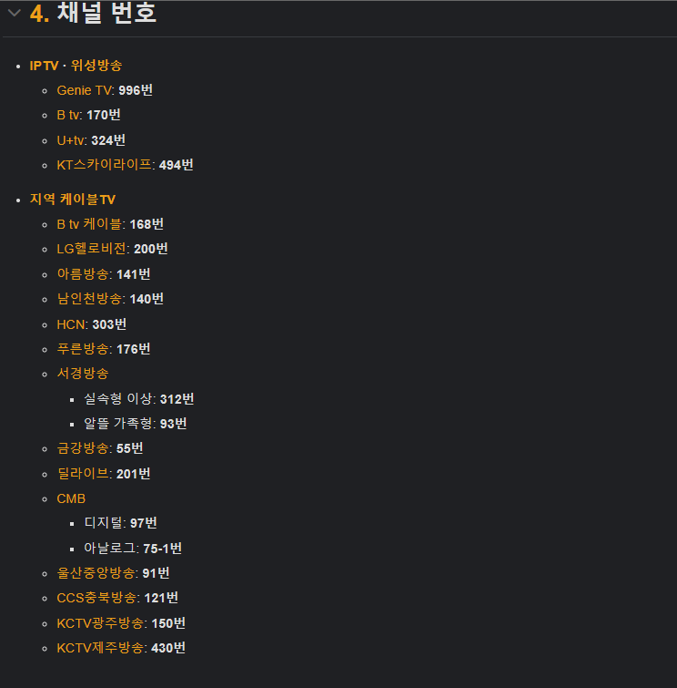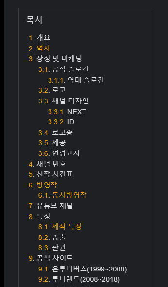 5. 투니버스 나무위키 정보에서 채널 정보를 확인합니다. 사진을 참고해 주세요.