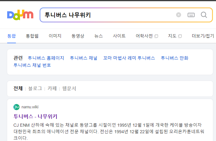 4. 투니버스 나무위키를 검색합니다. 나무위키는 많은 사람들이 정보를 정리해두는 곳이기도 하죠. 여러의미로 도움이 됩니다.
