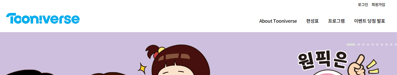 2. 투니버스 편성표 메뉴를 선택합니다.