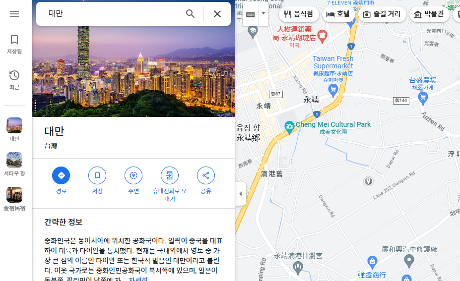 지도는 우리가 살아가는데 많은 도움을 주는 도구이기도 합니다. 과거에는 이런 상세한 지도를 극비로 다루기도 했습니다. 다양한 이유에서 겠죠. 지금은 인터넷을 통해 보다 상세한 지도와 정보를 얻을 수 있습니다. 대표적으로 구글 지도를 이용하는 방법이 있습니다. 해외에 나갈때, 지도 정보는 정말 유용한데요. 대만지도 보기 방법과 정보 찾는 방법을 알아보도록 합니다.