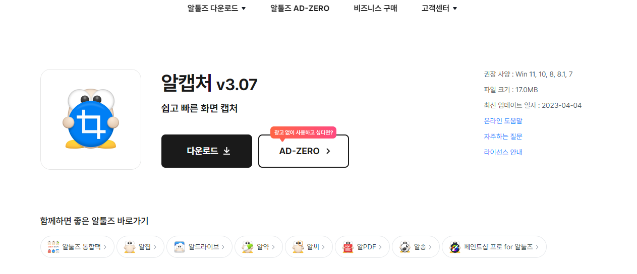 3. 알캡처 다운로드 버튼 찾기 및 다운로드 실행