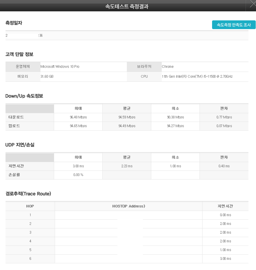 3. 인터넷 속도를 측정합니다.