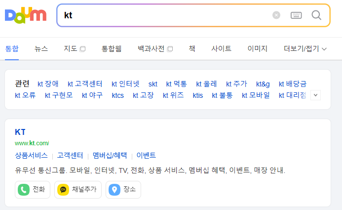 1. kt 홈페이지를 찾아봅니다. 다음 검색을 이용합니다.