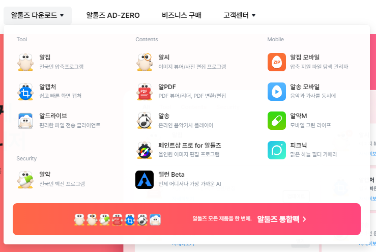 1. 알툴즈 공식 홈페이지를 찾아서 접속합니다. 알툴즈에서 제작 지원하는 프로그램들을 확인할 수 있습니다.