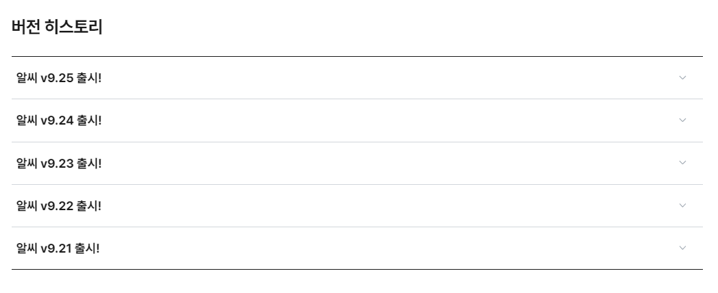8. 오랜기간 지원된 역사를 보여주는 '버전 히스토리' 정보를 통해 버전에 따라 지원되는 기능 혹은 변화된 모습등을 확인할 수 있습니다.