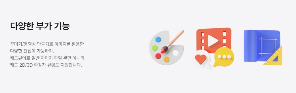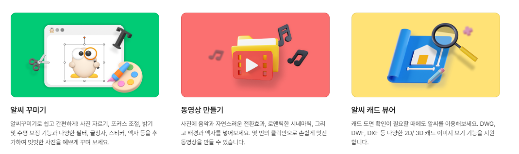 8. 간단한 사진 편집 / 동영상 만들기 / 알씨 캐드 뷰어의 기능을 지원합니다.