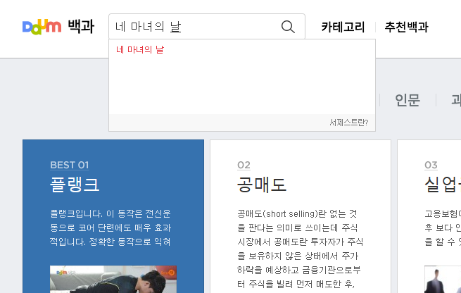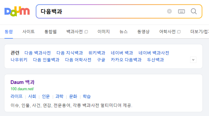 1. 다음 백과 홈페이지를 검색합니다. 참 다양한 내용들이 잘 정리되어 있습니다.