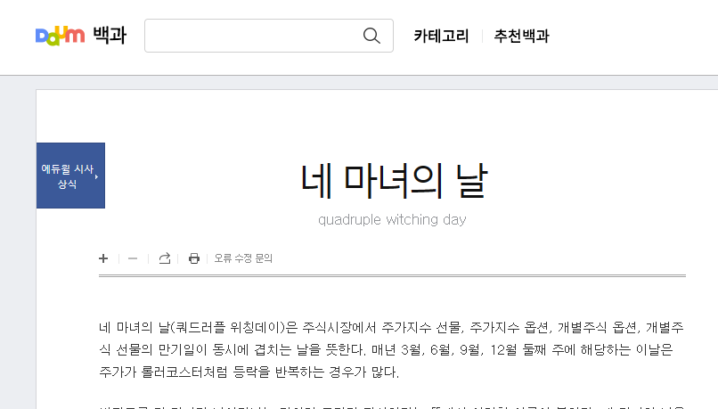 하지만, 모든 일은 그렇게 쉽지만은 않죠. 어느정도의 노하우가 있어야만 합니다. 네, 네 마녀의 날은 바로 주식에 관련된 용어입니다. 주가지수 선물, 주가지수 옵션, 개별주식 옵션, 개별주식 선물의 만기일이 겹치는 날을 의미한다고 하네요. 주가의 변동이 심한 상황이라 합니다. 마치, 롤러코스터처럼 말이죠.