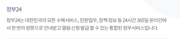 다행스럽게도 정부 24 홈페이지는 365일, 24시간 내내 사용할 수 있다고 안내되어 있습니다. 편리하고 고마운 기능임에 분명한 것 같습니다.
