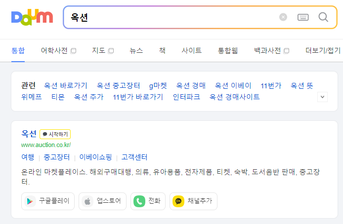 1. 다음 검색을 통해 옥션 공식 홈페이지를 찾습니다.