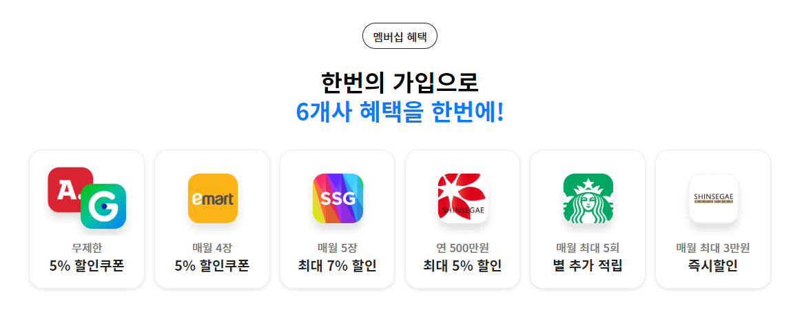4. 아래에는 6개의 혜택에 대한 정보를 담고 있습니다.