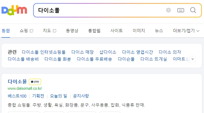 1. 다음 검색을 통해 '다이소몰' 공식 홈페이지를 찾습니다.