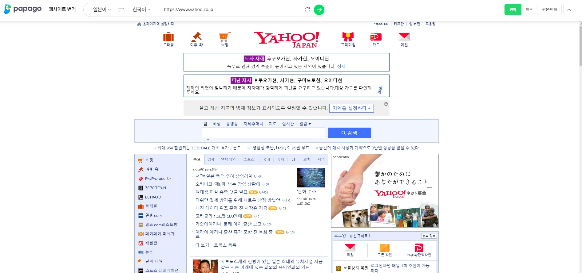 웹사이트를 다른 언어로 보는 방법은 표시되는 언어를 번역하는 것이겠죠. 사이트를 번역해주는 프로그램을 이용하는 방법이 있습니다. 최근 웹브라우저는 자체적인 번역을 지원하고 있습니다. 또한, 번역기에서 사이트 번역을 지원해주는 경우도 있습니다. 두가지 방법을 활용하여 야후 재팬 한글판을 이용하면 되겠습니다.