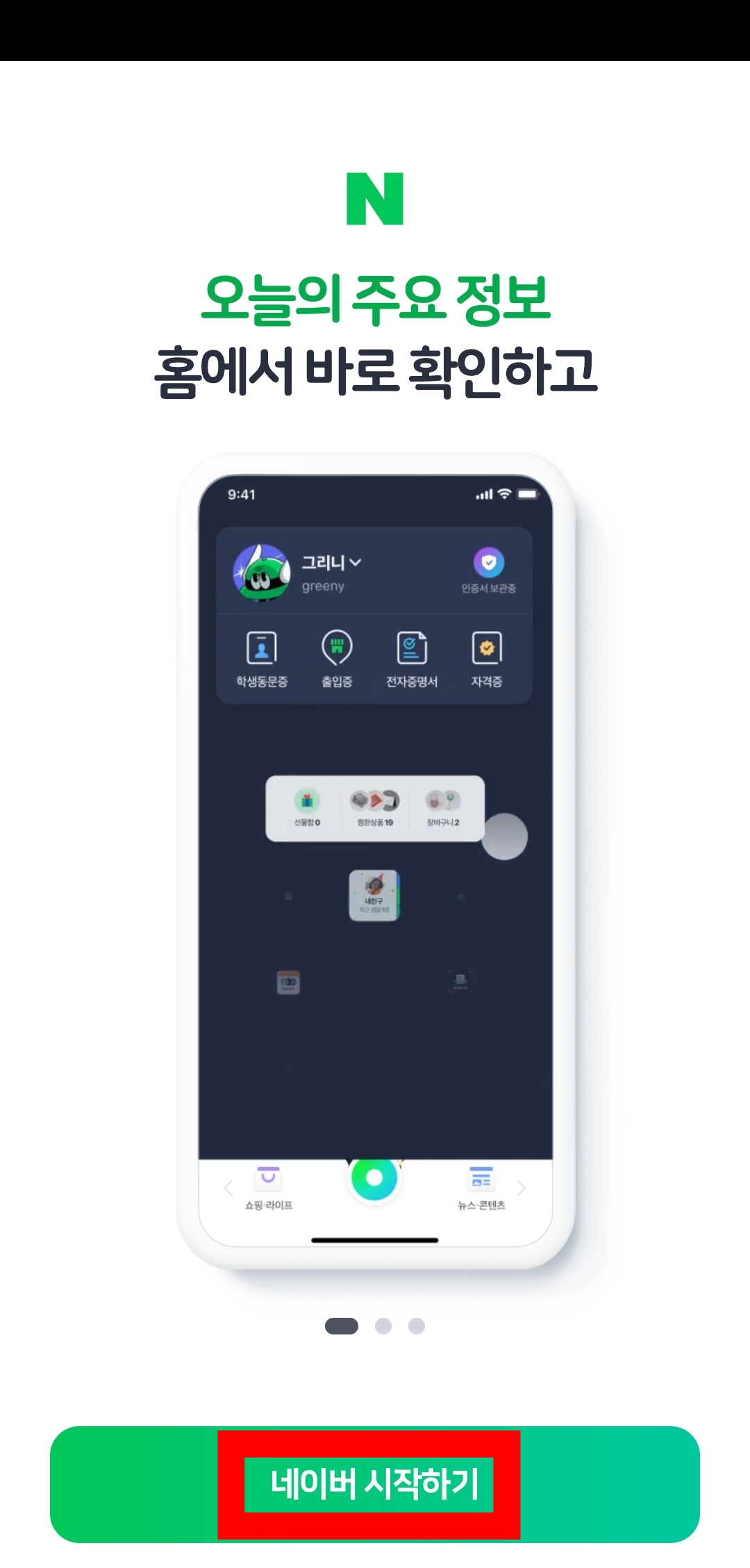 7. 본격적으로 네이버 앱을 이용하기 전 간략하게 설명을 볼 수 있습니다.