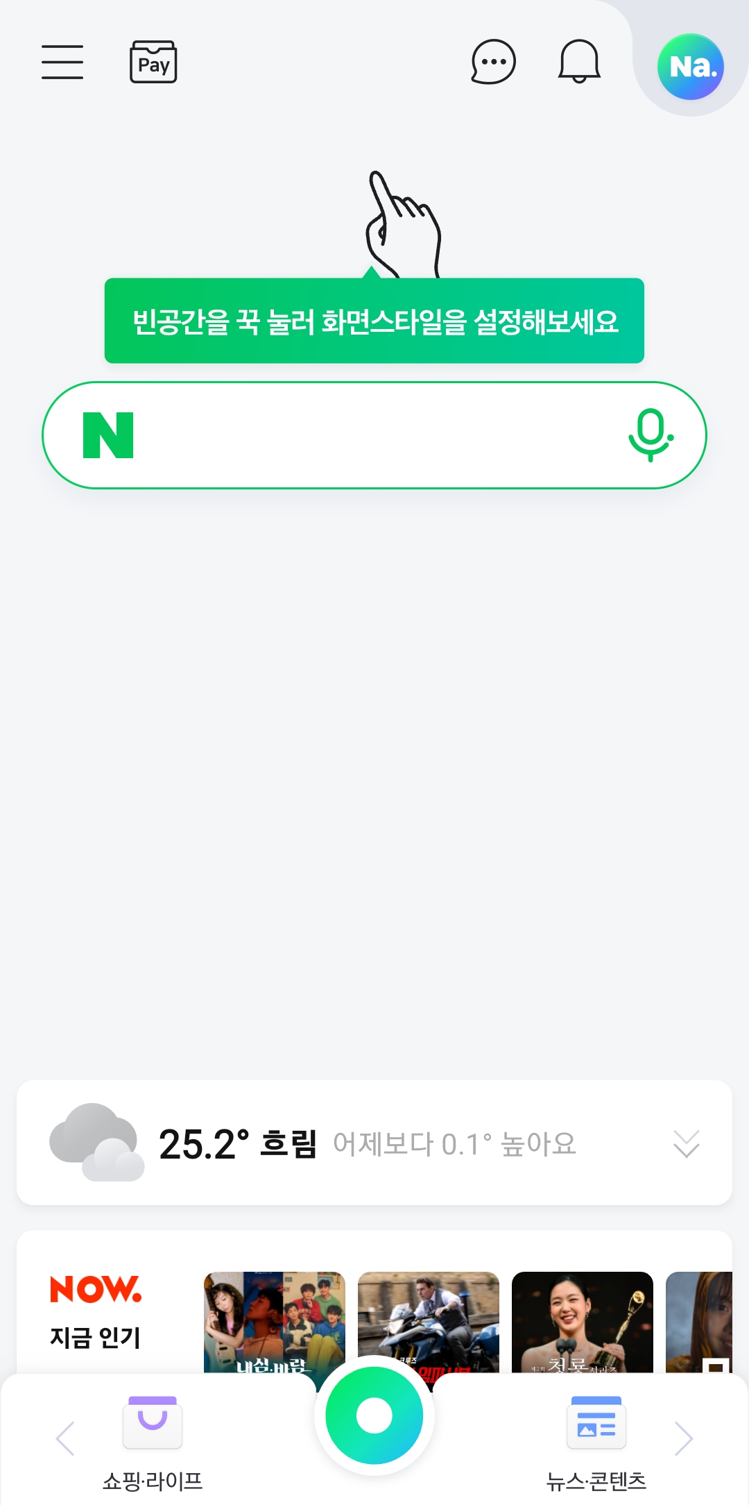 8. 이제 본격적으로 네이버 앱을 활용할 수 있습니다. 원하는 기능을 설정하고 화면을 적절하게 꾸며서 이용하면 됩니다. 모바일 친화적인 화면이라 스마트폰을 이용해 네이버를 활용하는데 도움이 될 것입니다.