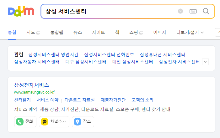 1. 다음 검색을 통해 삼성 서비스센터 홈페이지를 찾습니다.