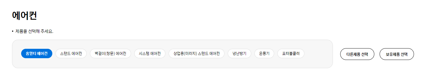 5. 에어컨이라는 제품도 분류가 몇가지 있습니다. 사용하는 제품의 분류에 맞춰 카테고리를 클릭합니다.