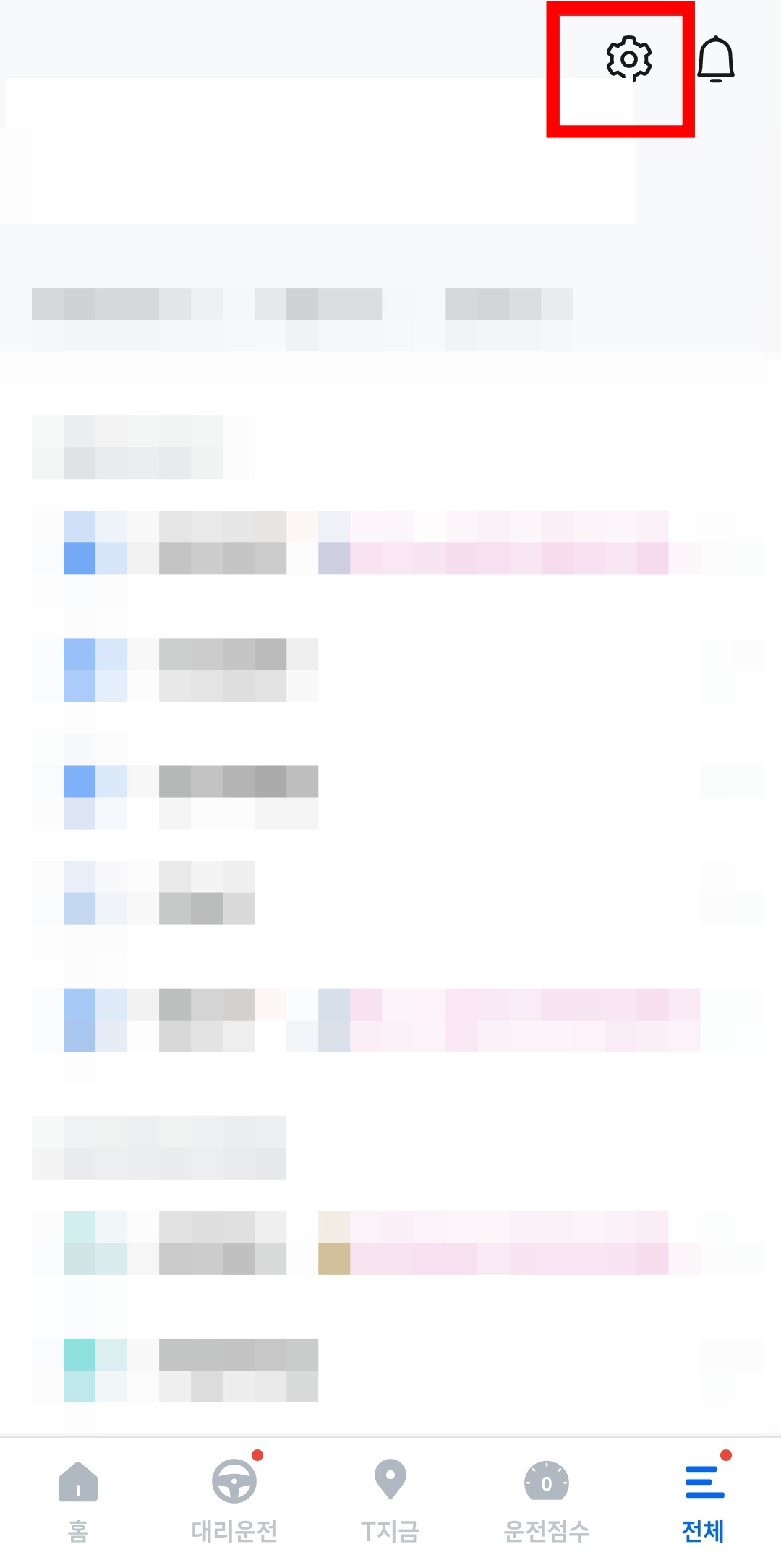 3. 다음 화면에서 상단에 있는 톱늬바퀴 설정 아이콘을 터치합니다.