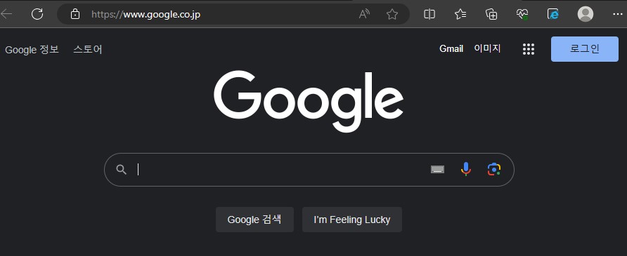 2. google.co.jp로 접속한 모습입니다. 아래 사진과 같이 나오네요. 사용자의 접속한 ip 혹은 설정에 따라 표시되는 언어가 결정되는 것 같습니다. 우선은 한글로 보여지네요.