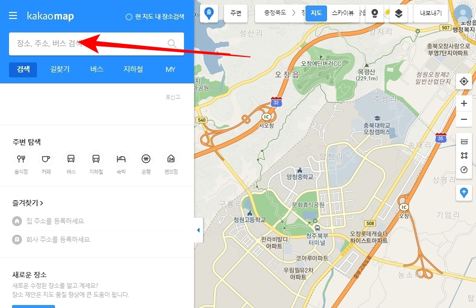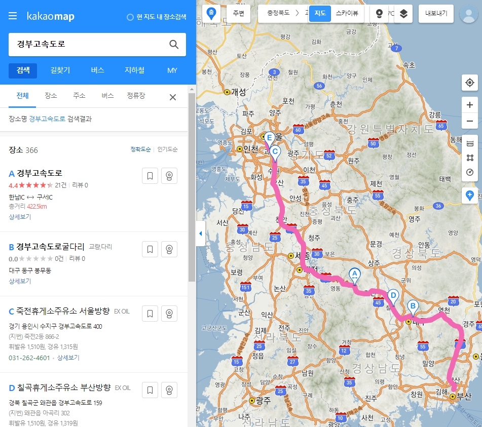 5. 카카오맵을 실행한 후, 검색 기능을 이용해 원하는 고속도로를 검색합니다.