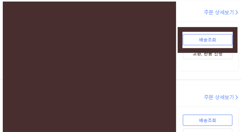 마이쿠팡을 선택하면 위 사진과 같이 여러 목록이 보여지게 되는데요. 여기서 '배송조회'를 클릭하면 됩니다.