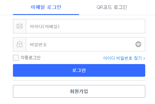다음 검색을 통해 공식 사이트를 찾은 모습입니다. 로그인을 합니다. 당연하겠죠.