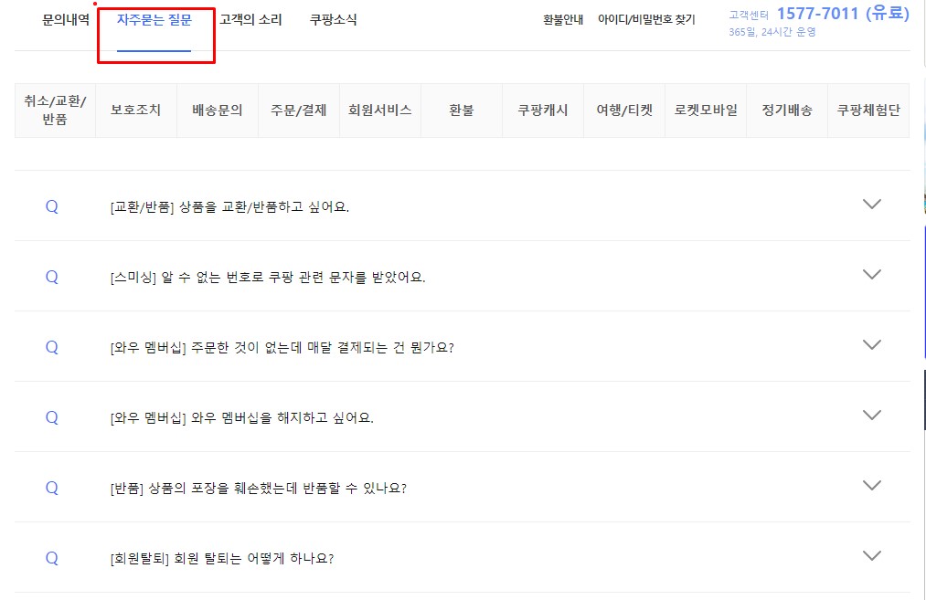 3. 쿠팡 고객센터 전화번호는 1577-7011입니다.